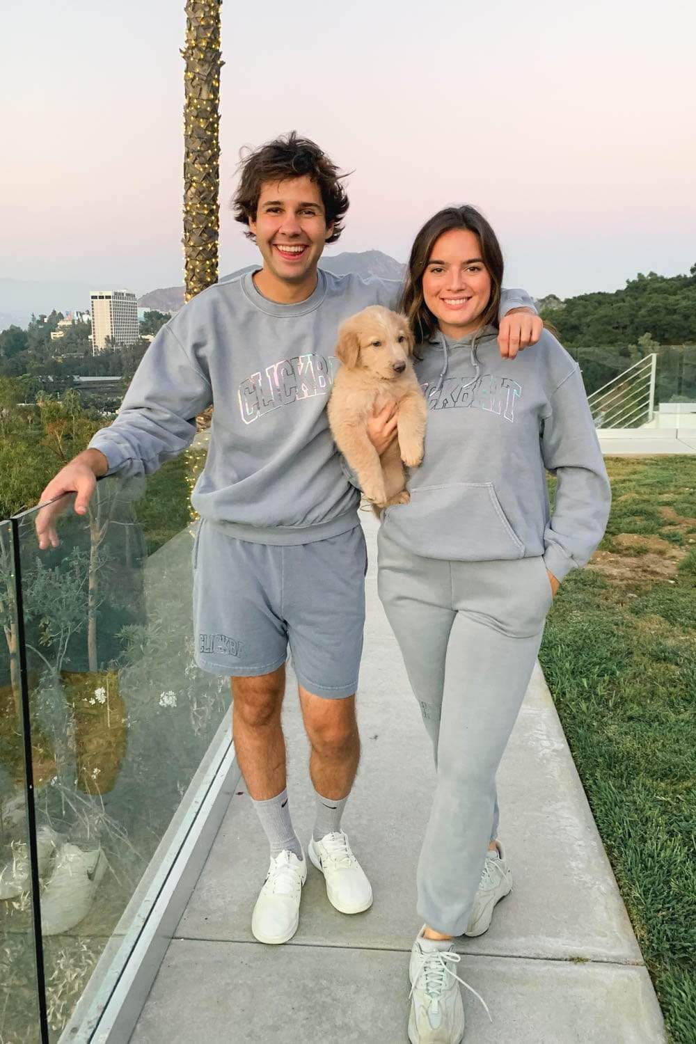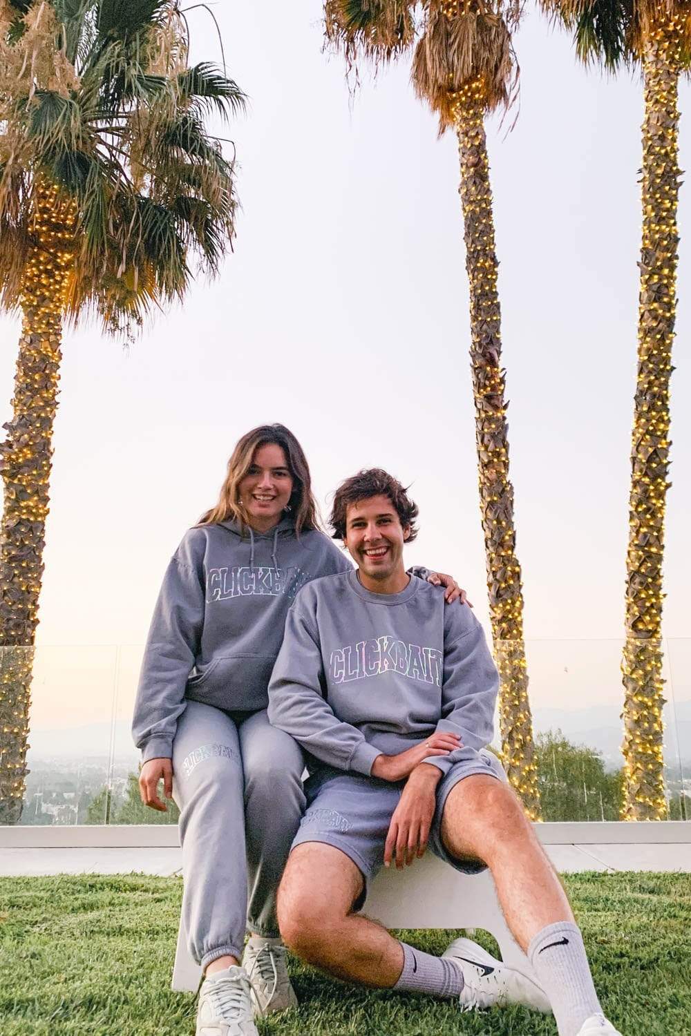 - David is wearing a size Large. Natalie is wearing a size Medium.