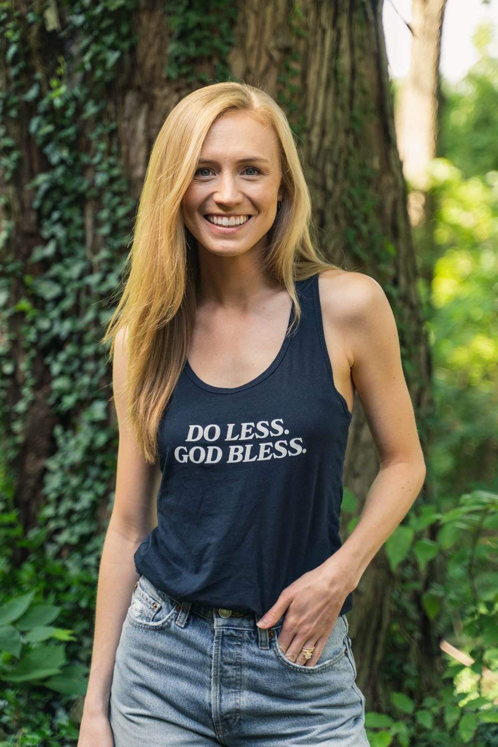Trey Kennedy Do Less God Bless Women's Navy Tank Top